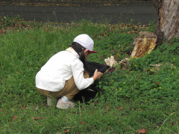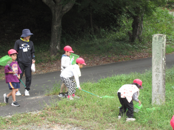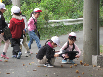 •  今日の1年生の生活科では、裏山へ生き物探しと秋見つけに行きました。