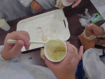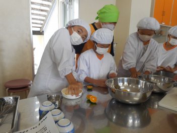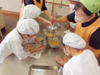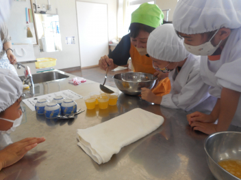 JAの女性部の方とボランティアの方にもお手伝いいただき、3年生が各クラス分かれて調理をしました。