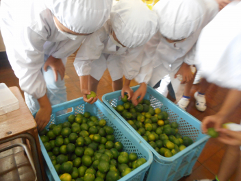 • 9月30日に、摘果したみかんを使ってゼリー作りを行いましたsad