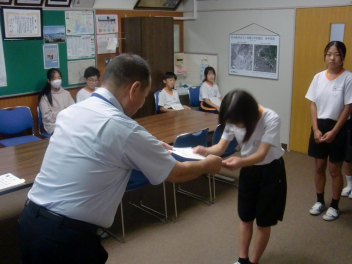 今回は、理科自由研究、児童生徒書写作品コンクールで優秀な成績をおさめた児童を紹介しました。