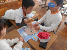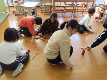 けんだま、こま、めんこ、お手玉、羽子板、竹とんぼなどを楽しみましたsmiley