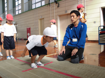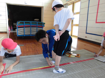 立ち幅跳びでは、両手を振って勢いをつけ、1回目よりも記録を伸ばそうと力強く跳んでいました。上体起こしでも、時間いっぱいまで力を出し切る姿が見られました。目標の記録を達成することができたかな。wink