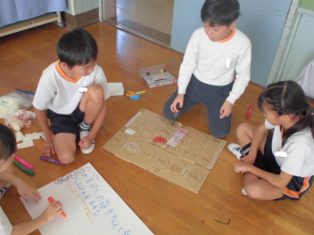 遊び方を話し合った結果、得点板をつくることにしましたsmiley