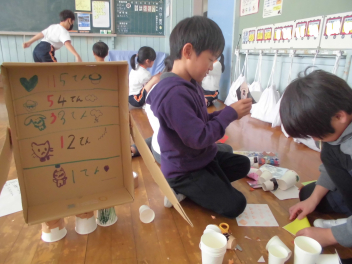 おもしろそうなおもちゃが出来上がりました。来週は、1・2年生で「ポンタランド」を開きます。楽しみですね。