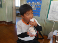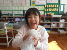 できたみかん大福を「家の人と食べるんだ」と大事に持ち帰る子、給食後に1つだけ食べて「めちゃくちゃおいしいー!」と喜んでいる子、「あんこの甘さと、みかんの甘酸っぱさがちょうどいい」と食レポする子、みんなが満足した体験となりました