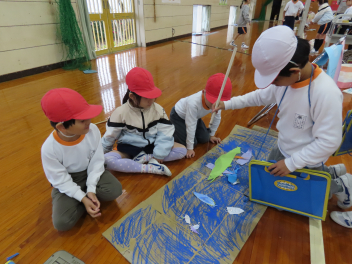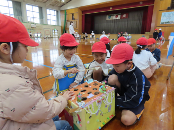 •  先週、1・2年生合同で「ポンタランド」を開きました。