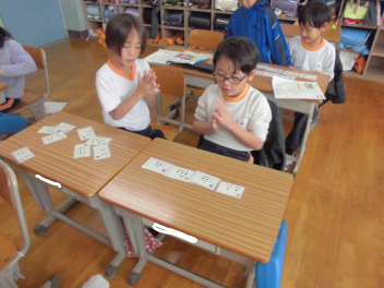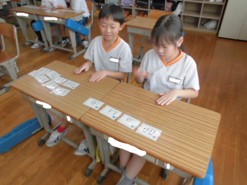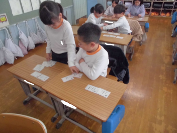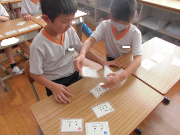 子供たちは、ペアになり、どの旋律をどのように組み合わせていくか、カードを並び替えながら考えました。