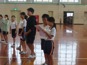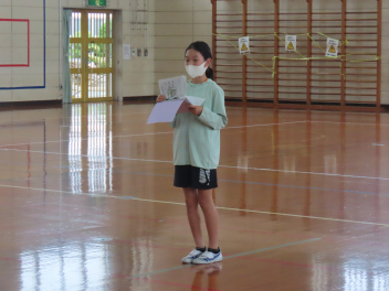 今日は出発式を行いました。代表の子が意気込みを発表していました。