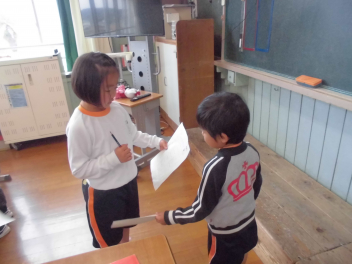 式の中では、6年生の代表児童による「お迎えのあいさつ」がありました。