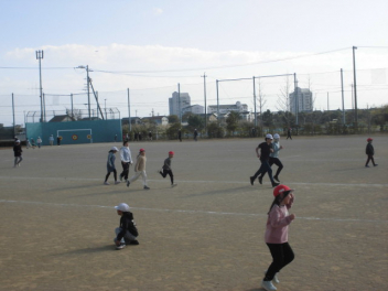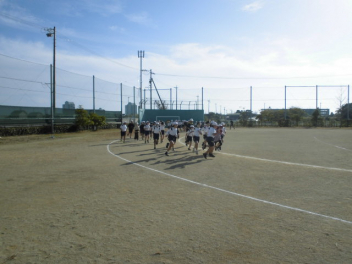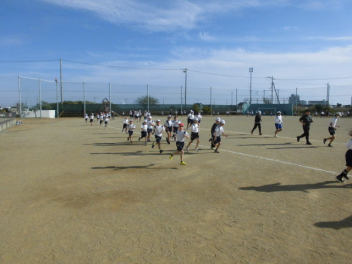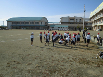 準備運動の後、高学年は6分間、中学年は4分間、低学年は3分間走ります。