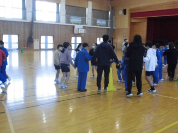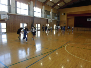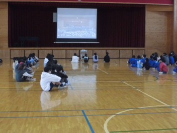 互いの学校紹介の後、ダンスやボール運びゲームをして楽しい時間を過ごしました。