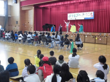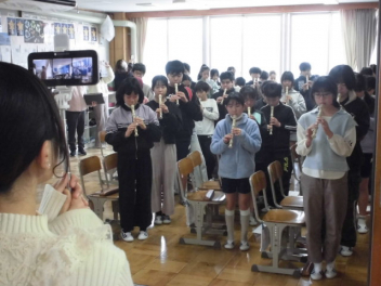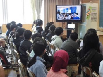 •  2/24(火) 5年生がフィリピン・ダバオ市にあるキャプテントーマス小学校と音楽交流をしました。