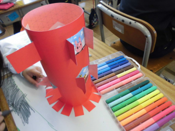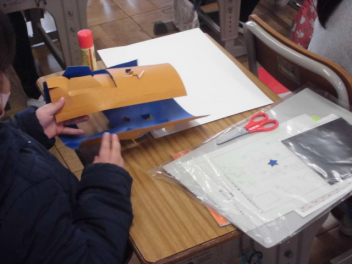 2/25(水) 2年生は図画工作科「まどをあけたら」の作品作りです。