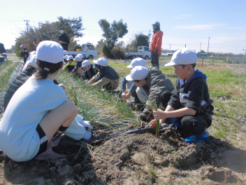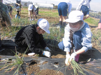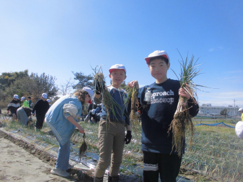2/27(金)昨日、3年生がエシャレットを収穫しました。