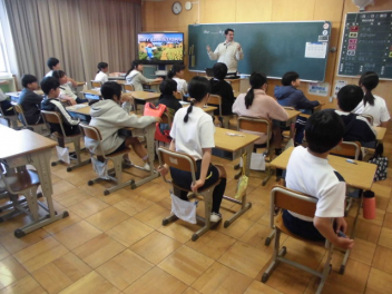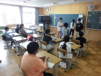 6年生は英語科 「What      do you like?」の会話をしています。