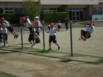 4/16(木)1年生は体育科 「ならびかた」の確認と、「てつぼうあそび」です。