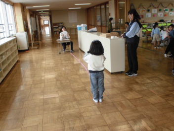 4/17(金) 1年生は、図画工作科の学習と並行して「視力検査」をしています。