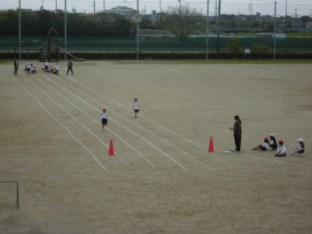 2年生は、体育科で「50m走」のタイムを計っています。