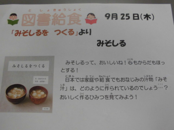 9/26(金) 読書週間に合わせた、図書給食の3日目です。