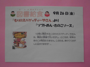 9/29(月) 読書週間に合わせた、図書給食の4日目です。