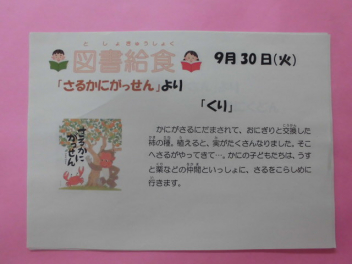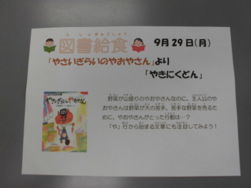 9/29(月) 読書週間に合わせた、図書給食の4日目です。