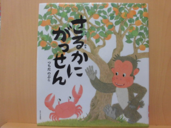 につなげて、「さるかにがっせん」という本の紹介をしました。