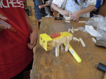3年生の図画工作科では、金づちを使って木材を組み合わせています。