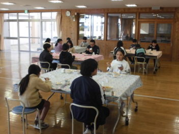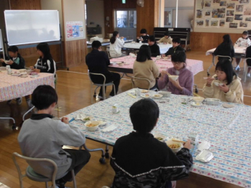いつもと違う環境で、おいしく給食をいただきました。