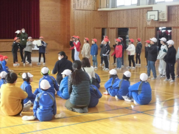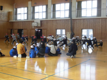 学校紹介のあと、運動会のダンス(「ココロの地図」「ソーラン節」)を互いに披露しました。
