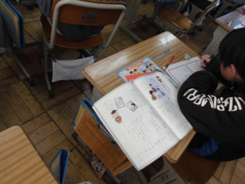1/26(月)1年生は国語科の書写で文字の練習をしています。