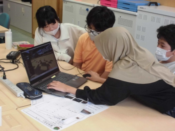 仮想空間で、南の星小学校区を再現されたものに、「小学校から五島地区津波避難マウンドまで橋を造る」という建設業体験をしました。