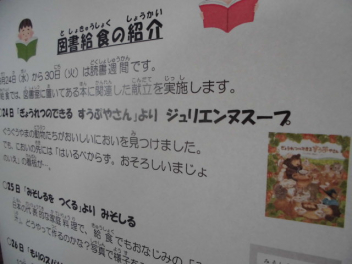 9/24(水) 読書週間に合わせて、給食では図書室に置いてある本に関連した献立を実施します。