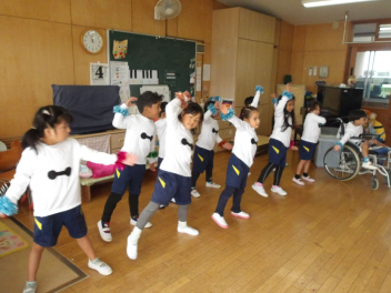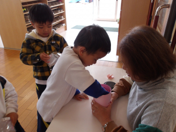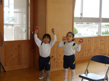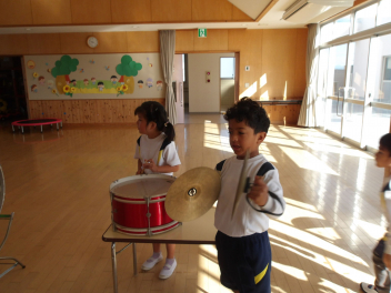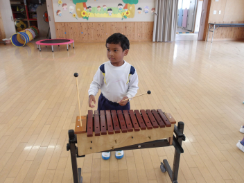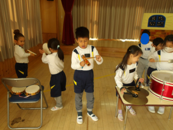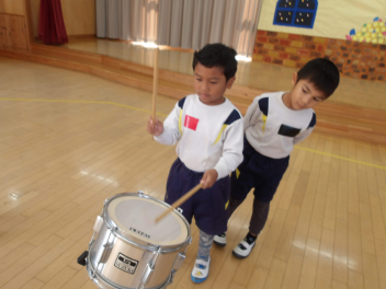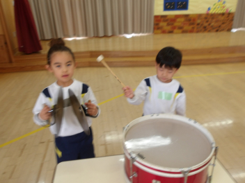 リズムよく打てるように年長さんが教えてくれましたsmiley