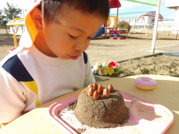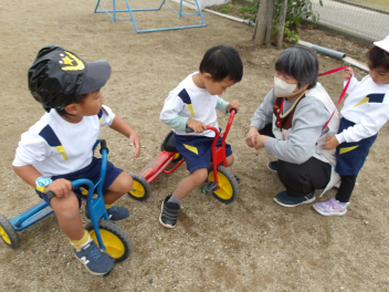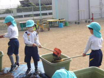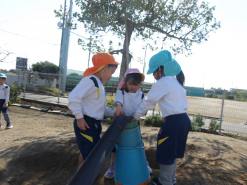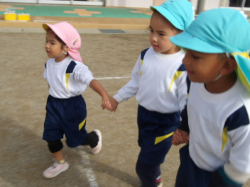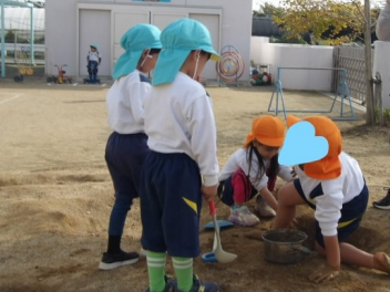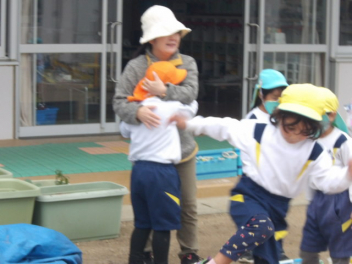 今日は、気温が低くて寒かったけれど、戸外でたくさん遊んで楽しかったねcheeky