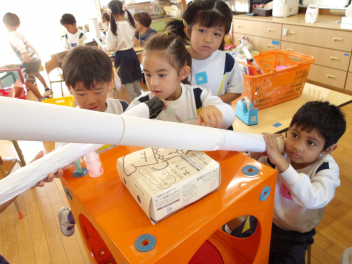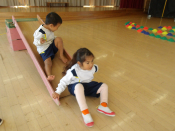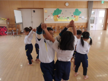 遊戯室ではそら組とおひさま組がなんだか楽しそうなことをしていましたwink