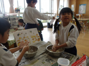 そら組は、小麦粉粘土を小麦粉から作りましたwink