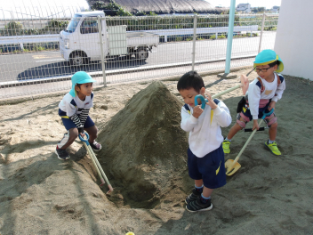 未だに砂場での大山作りとお濠作りにはまっていますangel