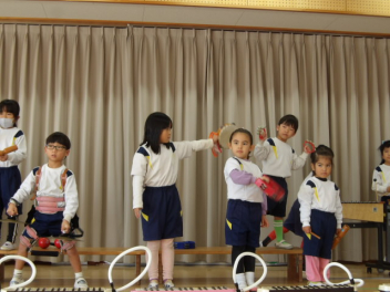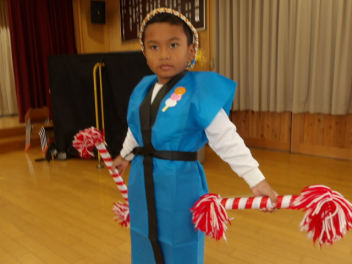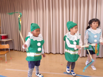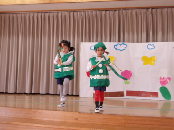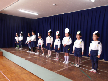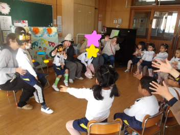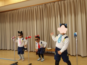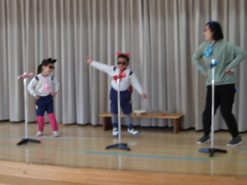 先生と一緒に大きい組のオペレッタの真似をして遊んだよ