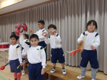 • 今日は、白脇幼稚園のお友達と発表会の出し物を見せ合う時間もありました2回目なので、顔や名前を憶えていて、声を掛け合う姿も見られました