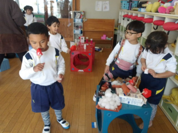 • 発表会が昨日終わり、今日からは、役を交代しながらのごっこ遊びが始まりました