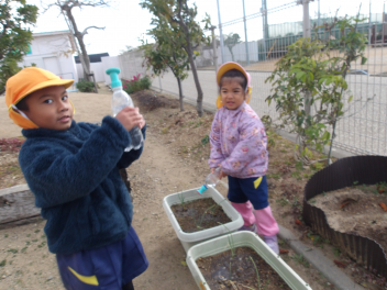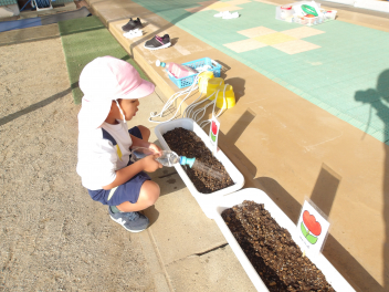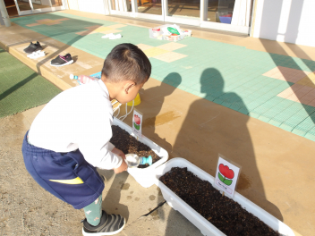 大きい組は、球根を3つ植えました。どんなお花が咲くのかなぁ~wink