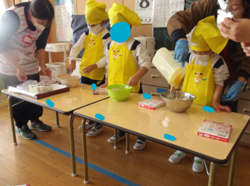 おやつのフルーチェは12月生まれの3人がつくってくれました