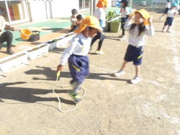 縄跳びに何回も挑戦wink
