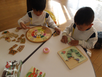 登園をして支度が早いとカードゲームでたくさん遊べますwink