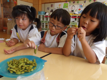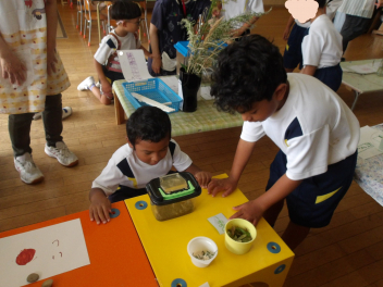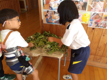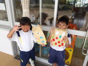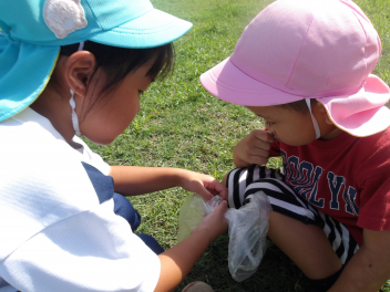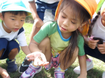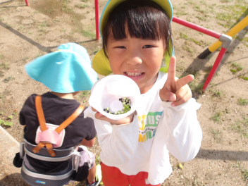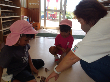 日差しは、まだまだ厳しいですが、時折吹く風は、秋を感じさせてくれます子供たちの遊びも秋の自然物を取り入れたものに変わってきましたwink