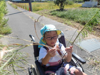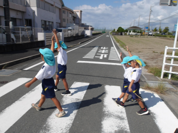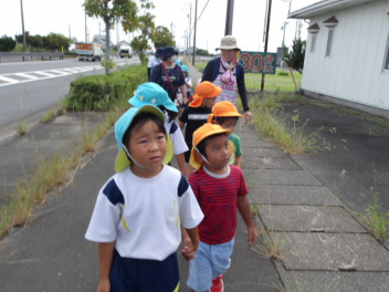 • 秋の風が吹く心地よい日差しの中、子供たちは園外散歩に出かけましたsmiley