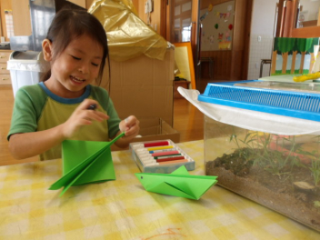 捕まえたバッタのお友達を折り紙で折ったよcheeky
