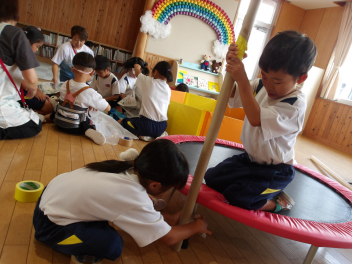 職員の研修もあり、幼稚園では、みんなで遊びましたよsad