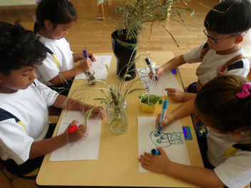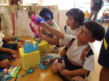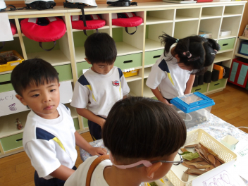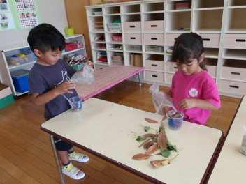 大きい組さんも、お散歩で見つけた宝物で何か楽しい遊びが始まりそうですsmiley