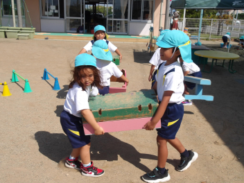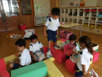 年少さんと年中さんは、同じ場で仲間になって遊ぶことが楽しくなってきました